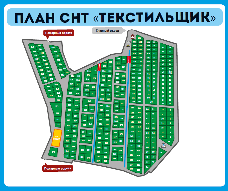 СНТ « Текстильщик» основано в 1989 году. Место расположения: Московская область, Орехово – Зуевский район, южнее г. Дрезна, 68 км Носовихинского шосее. Наше СНТ состоит из 9 улиц, на которых расположились 345 участков. СНТ находится в активной стадии развития и улучшения качества жизни наших содаводов. СНТ имеет круглогодичный подъезд для легковых автомобилей и сезонный проезд грузового автотранспорта.